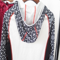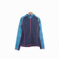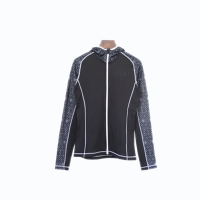- This hooded jacket is comfortable, breathable and easy to dry during sports. The hood and side parts are sublimation printed.
