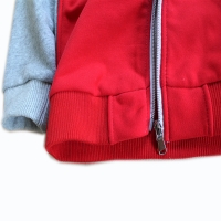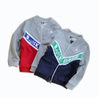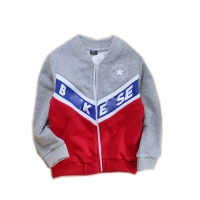- V style cut and sewn with printed LOGO, contrast color zip-up kid's jacket for sports and daily wear; warm and convient for daily exercise.