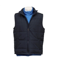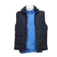 This water-repellent vest is two pieces in one, both can be worn separately. It is with hood and good-quality YKK full zippers. Other colors can be custom.